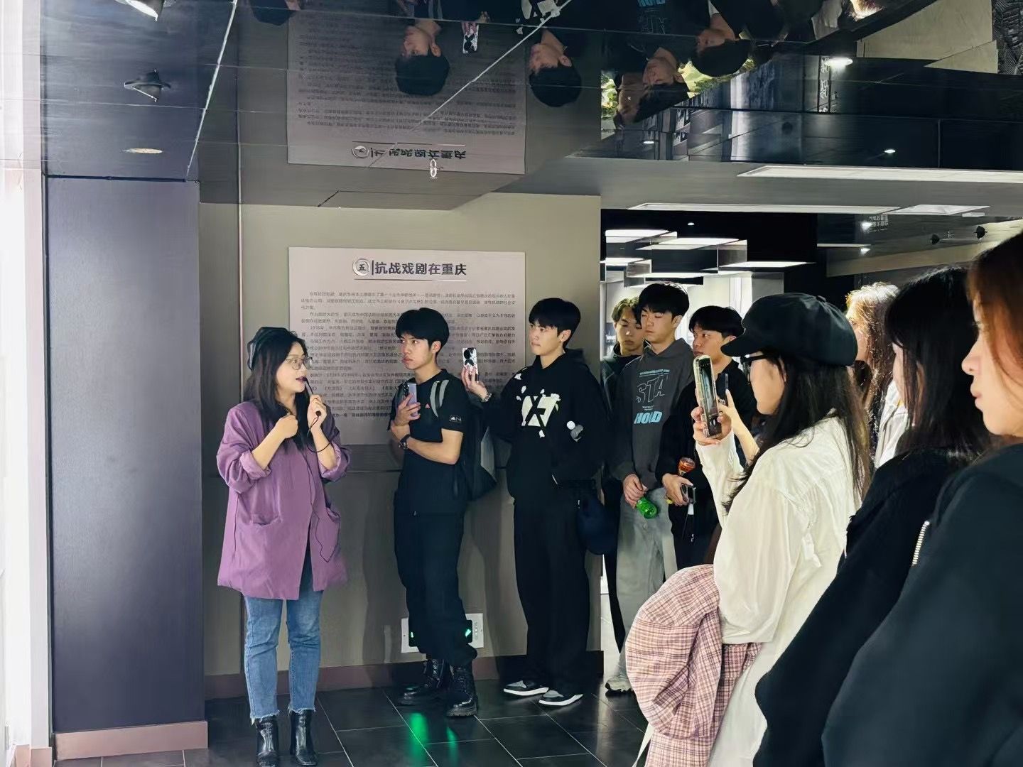 通过走进重庆抗建堂参观及讲解,学生们了解了戏剧抗战精神、戏剧名人、名家名剧等相关内容。