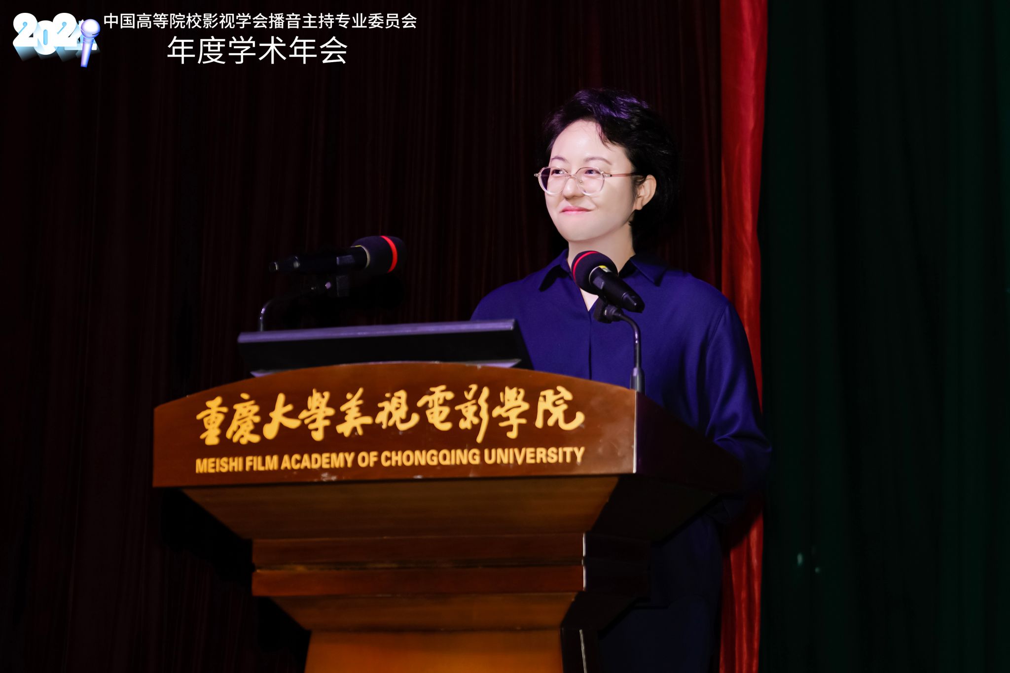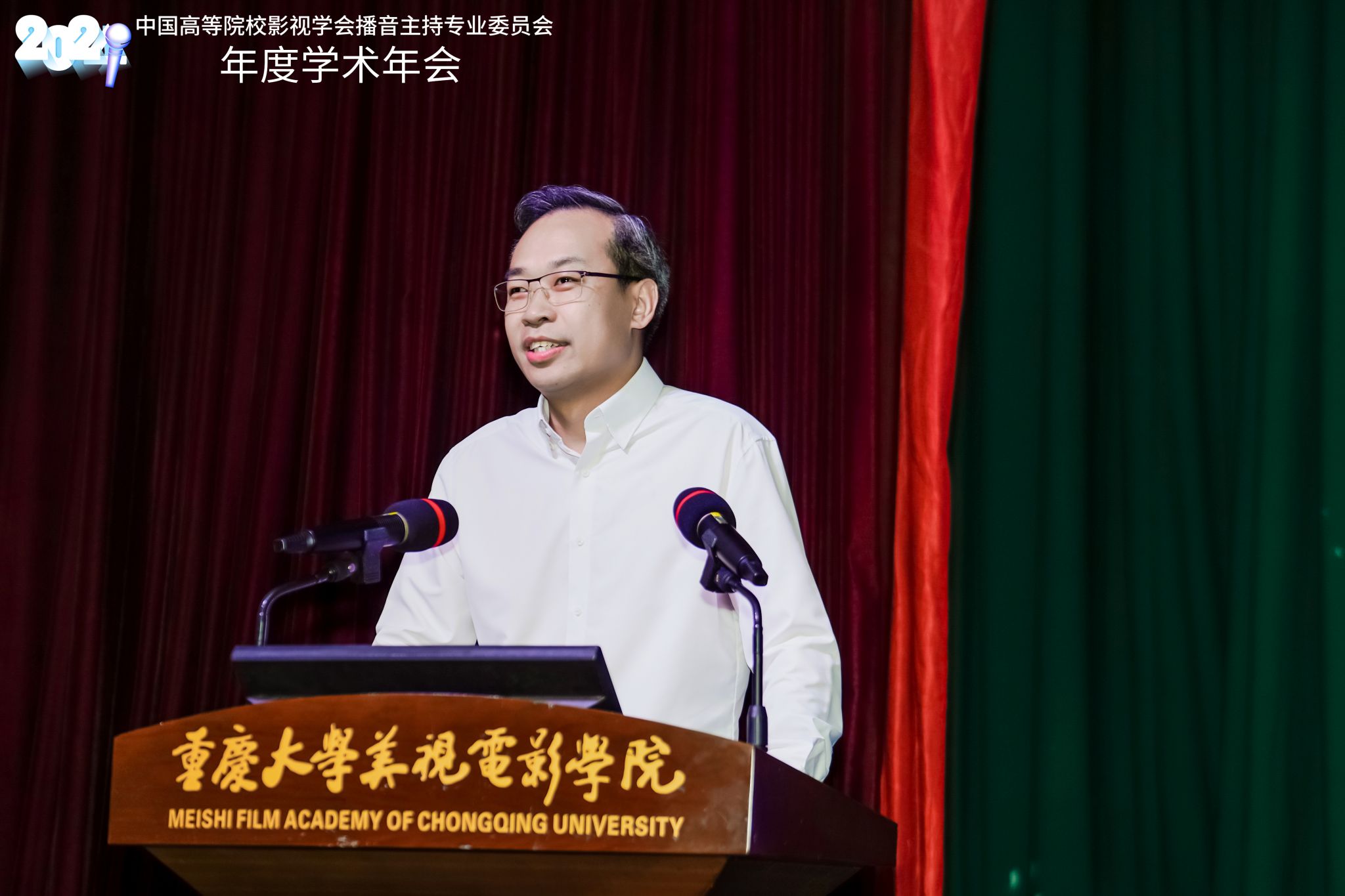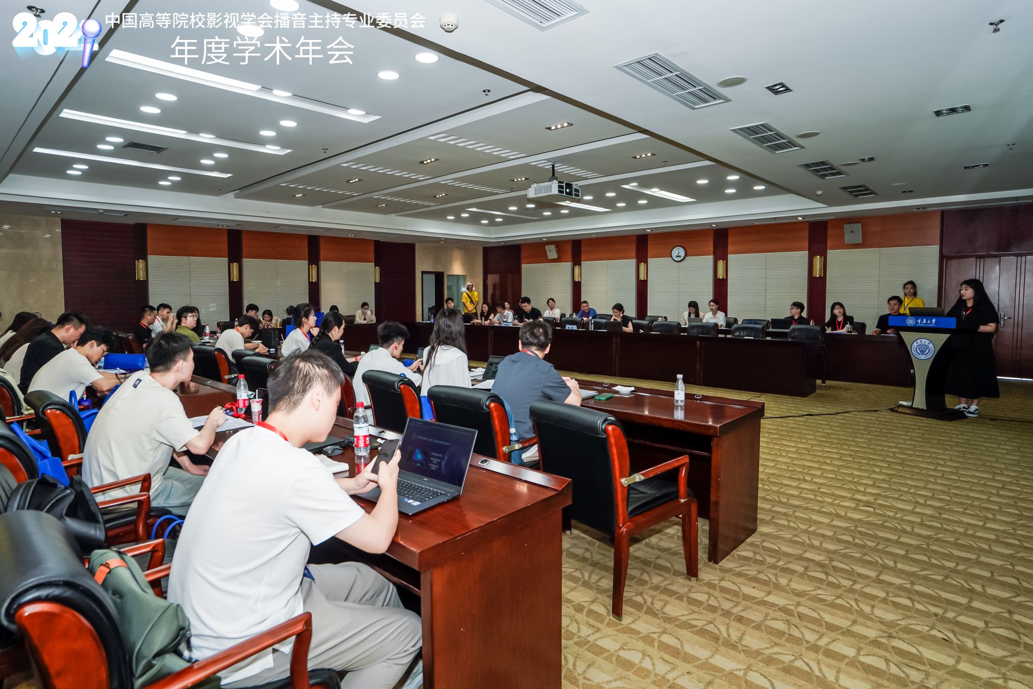 文化创意产业研究院、重庆市播音主持协会以及成渝地区双城经济圈高校播音与主持艺术联盟协办。来自159所会员单位的200余名师生代表参加此次会议。本次学术年会首次在京外高校举行,通过与各理事单位、会员单位广泛携手、深入交流,推动播音主持学术研究走深走实。