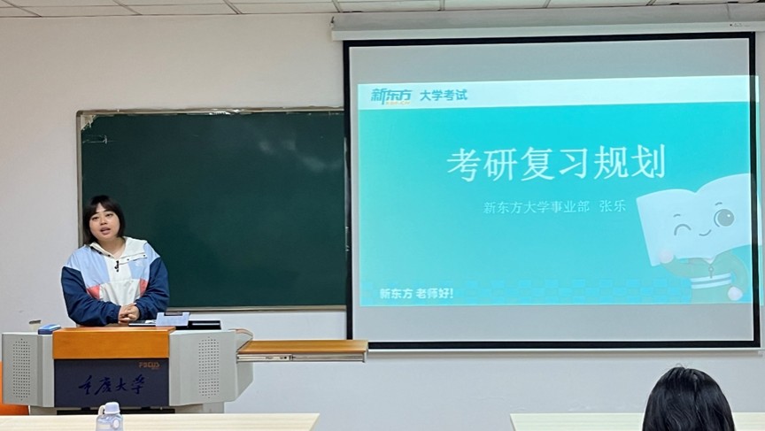 随后,张舒蕾、石林浩两位分享人结合自身经历、专业方向和具体科目特点,围绕自我评估、院校选择、信息搜集、考研流程、复习时间规划、备考经验、简历制作、作品集准备与身心调节等多个维度向师弟师妹进行了精彩分享。新东方的张乐为与会的同学们讲解了考研英语复习时间规划,结合历年真题为与会同学分析了考研英语的答题技巧。在交流互动环节,每位分享人倾囊相授,针对同学们提出的疑惑和问题进行了细致耐心的解答。