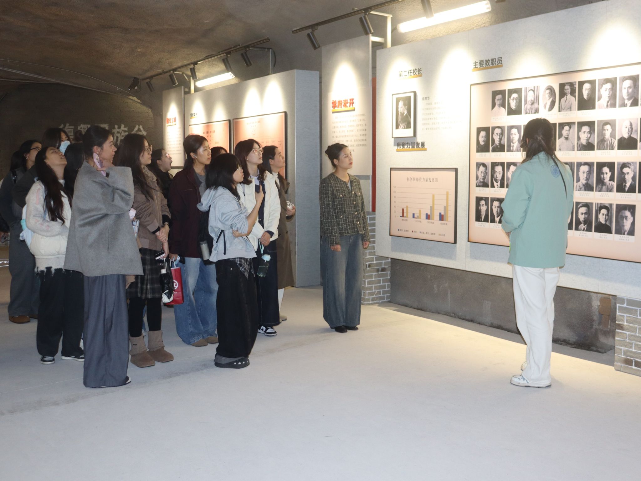 的历史是一部与民族命运和国家发展同向同行的担当史。在防空洞展区,讲解员重点讲述了这片坚强壁垒背后的英勇事迹。同学们通过图片展件和生动讲解,深切体会到了抗战时期重大师生在硝烟中坚持办学、在防空洞里弦歌不辍的坚韧意志。