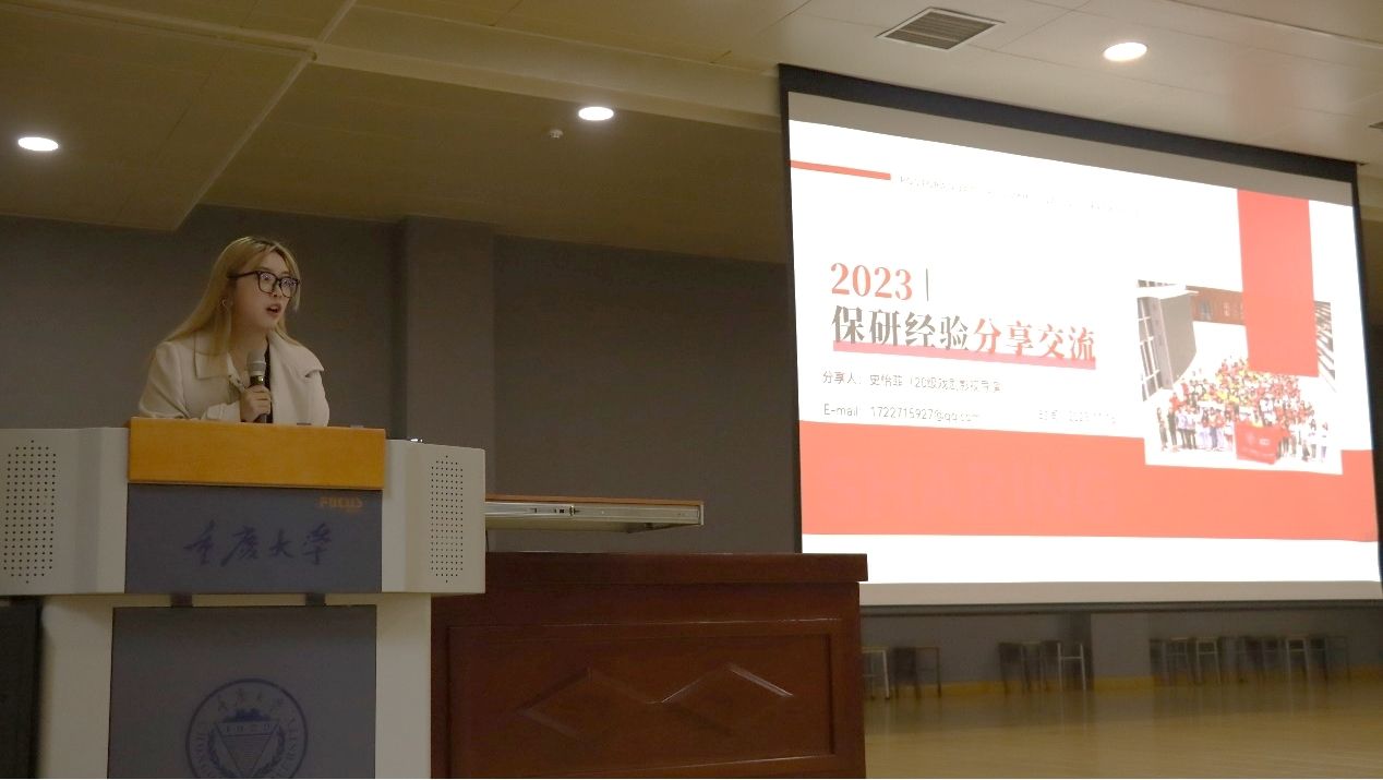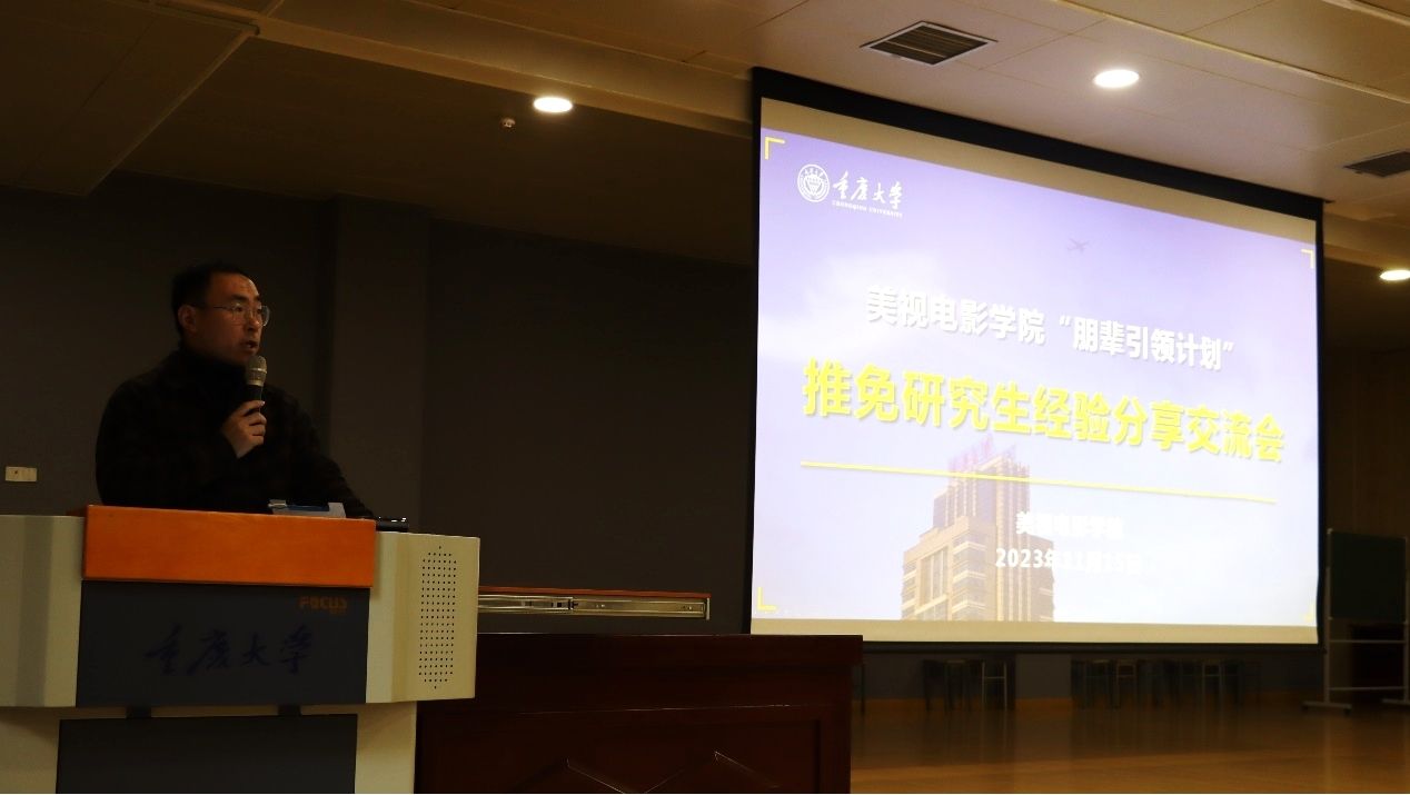 在学院阶梯教室举办“朋辈引领计划”推免研究生经验分享交流会,邀请了学院2020级推免至上海交通大学的赵晨媛、史怡菲,北京师范大学的王俊超、中国传媒大学的郭雪南、上海戏剧学院的池雪儿五位同学作为分享人,活动由学生办公室主任、2021级辅导员厉宣浩主持,学院党委副书记、纪委书记赵华及2021级、2022级、2023级100余名本科生参加。