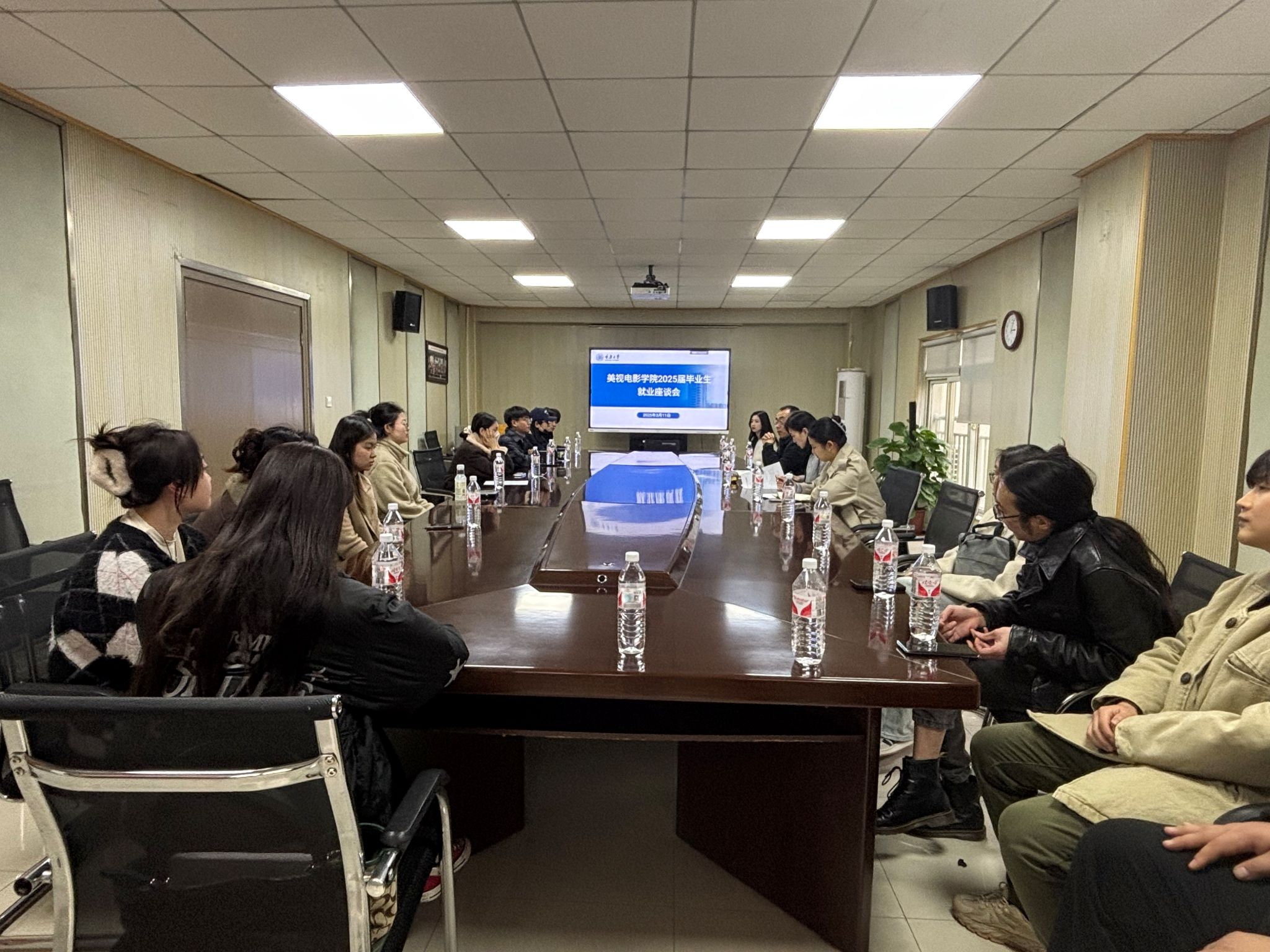 在后楼三楼会议室召开了2025届毕业生就业座谈会。会议由学院学生工作办公室主任、2021级本科生辅导员厉宣浩主持,学院党委副书记、纪委书记赵华,研究生辅导员冉欢及20余名2025届毕业研究生、本科生代表参加会议。