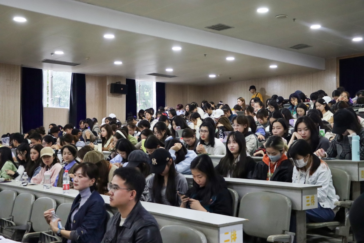 教务办主任梁晓影从学籍管理、学分记录、培养方案、辅修、课程选修及考核情况进行了详细的介绍。针对高中与大学的区别,她强调自主学习的重要性,鼓励新生们将学习放在第一位,不断提高自身文化水平。