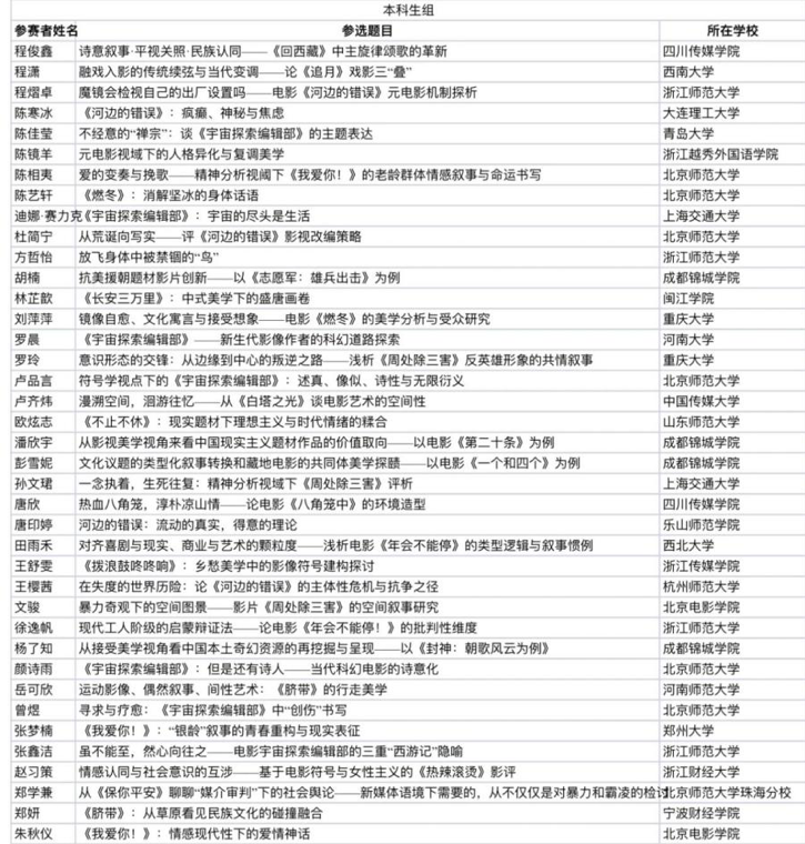 【附北京国际电影节·第31届大学生电影节“大学生影评推选”入选名单】